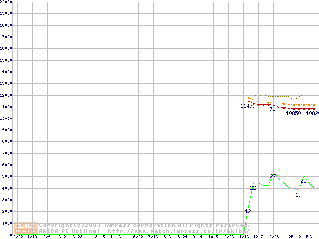 Socket 478 (micro-PGA,FSB 400MHz,L2 128KB,Northwood)の最安値推移