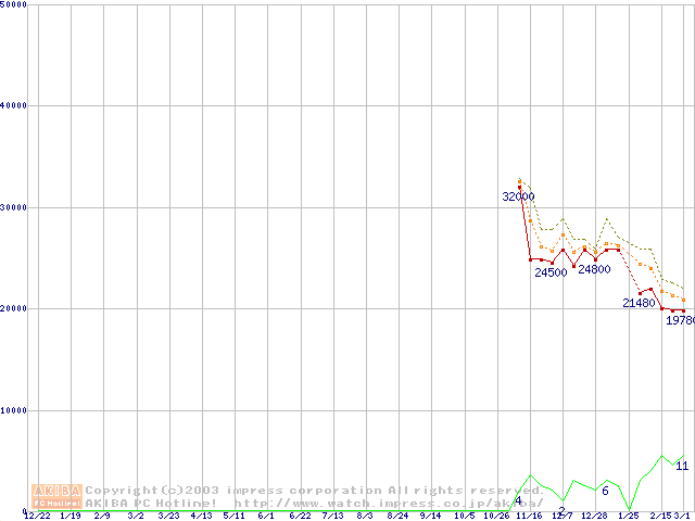 MHSシリーズ (9.5mm,4200rpm,UltraATA/100,2MB,FDB,30GB/Platter,FDB)の最安値推移
