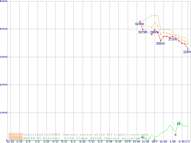 MKシリーズ (9.5mm,5400rpm,16MB,FDB,30GB/Platter)の最安値推移