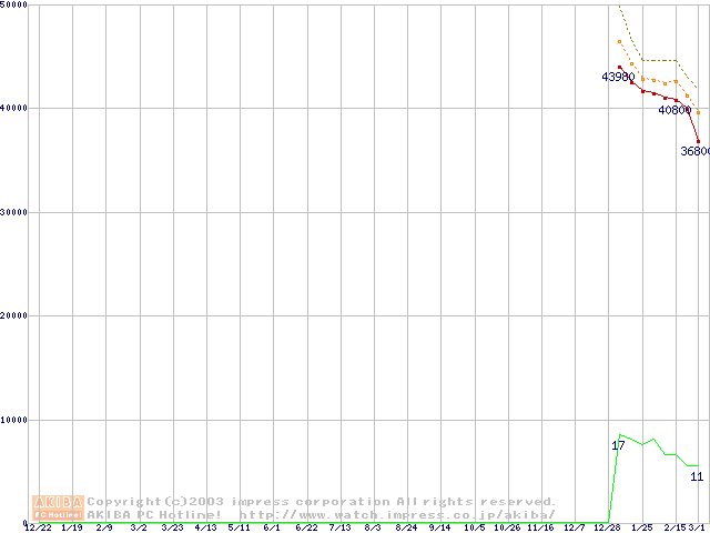 DiamondMax 16 (5400rpm,UltraATA/133,2MB,80GB/Platter,BB)の最安値推移