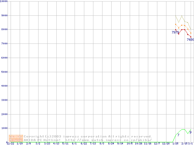 | Athlon XP 1800+ (1.53GHz) バルク(Thoroughbred)の価格推移 |
