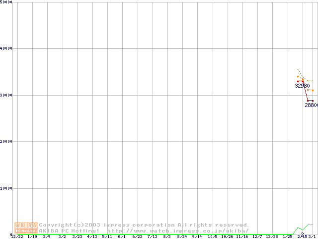 Socket 604 (micro-PGA,FSB 533MHz,L2 512KB,Prestonia)の最安値推移