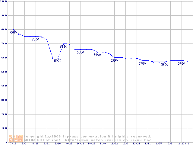 | [↓次グラフ]: | Socket A (PGA,FSB 200MHz,L2 256KB,Thunderbird)の最安値推移 |