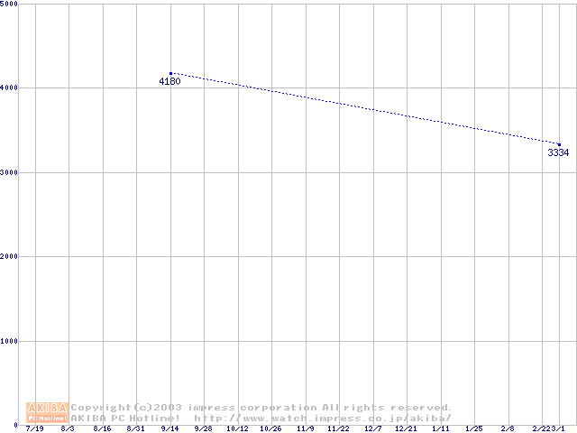 | [↓次グラフ]: | Socket 370 (PPGA,FSB 66MHz,L2 128KB,Mendocino)の最安値推移 |