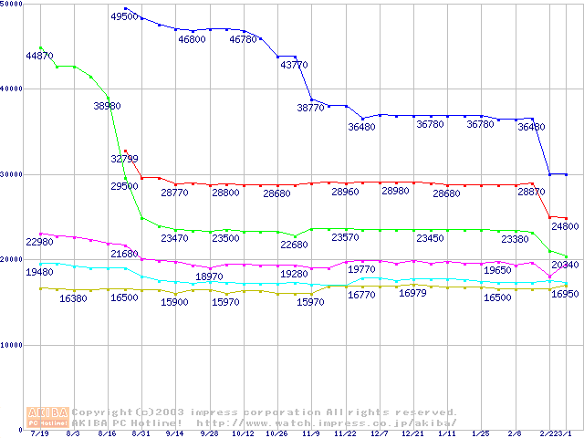 | [↓次グラフ]: | Socket 604 (micro-PGA,FSB 533MHz,L2 512KB,Prestonia)の最安値推移 |