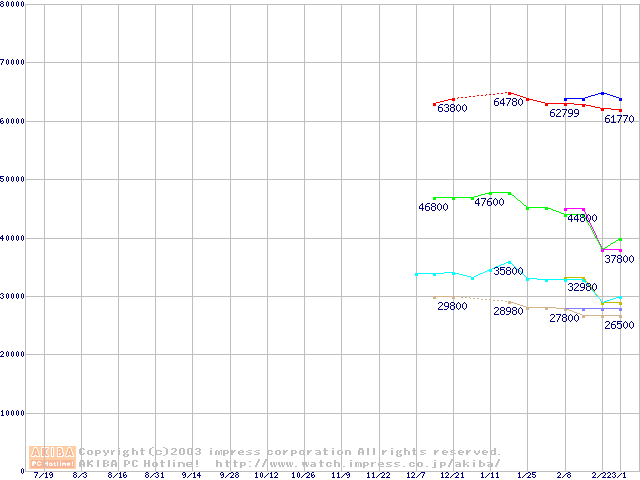 | [↑前グラフ]: | Socket 478 (micro-PGA,FSB 400MHz,L2 512KB,Northwood)の最安値推移 |
