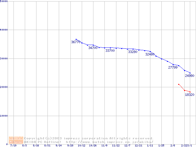 | [↓次グラフ]: | Deskstar 180GXP (7200rpm,2MB,UltraATA/100,FDB)の最安値推移 |