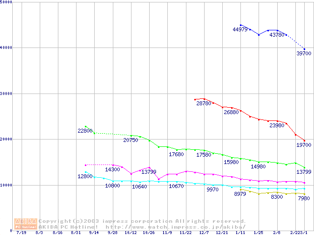 | [↑前グラフ]: | DiamondMax Plus 9 (7200rpm,8MB,UltraATA/133,FDB)の最安値推移 |