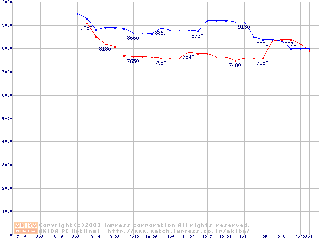 | DiamondMax Plus 8 (7200rpm,2MB,UltraATA/133,FDB)の最安値推移 |