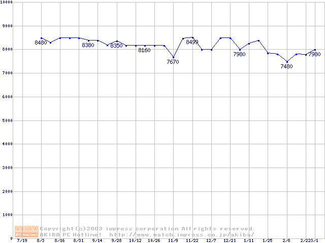 | [↑前グラフ]: | Fireball 3 (5400rpm,UltraATA/133,2MB,FDB)の最安値推移 |
