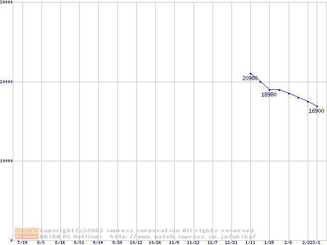 | [↑前グラフ]: | Barracuda 7200.7 (7200rpm,UltraATA/100,80GB/Platter,FDB)の最安値推移 |