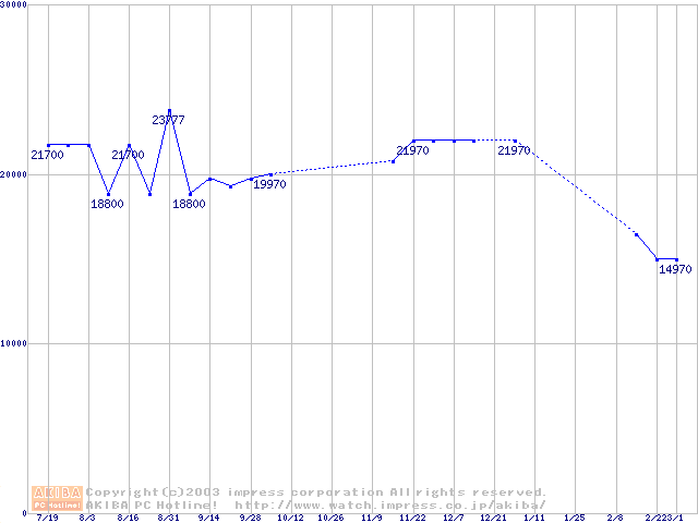 | [↓次グラフ]: | PC3200(DDR400) DDR SDRAM DIMMの最安値推移 |