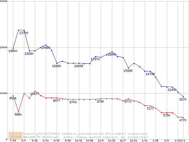 | [↓次グラフ]: | PC3500(DDR433) DDR SDRAM DIMMの最安値推移 |
