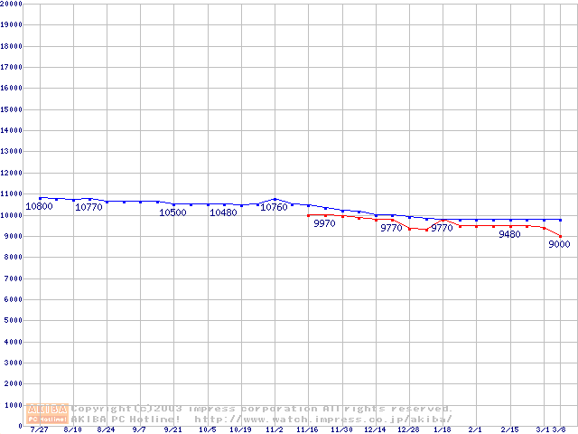 | [↑前グラフ]: | 2.5インチHDD主要製品の最安値推移 |