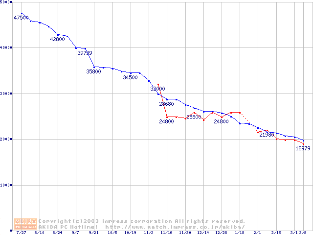 | [↓次グラフ]: | 2.5インチHDD主要製品の最安値推移 |