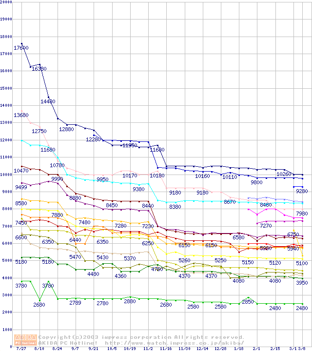 CPU主要製品の最安値推移