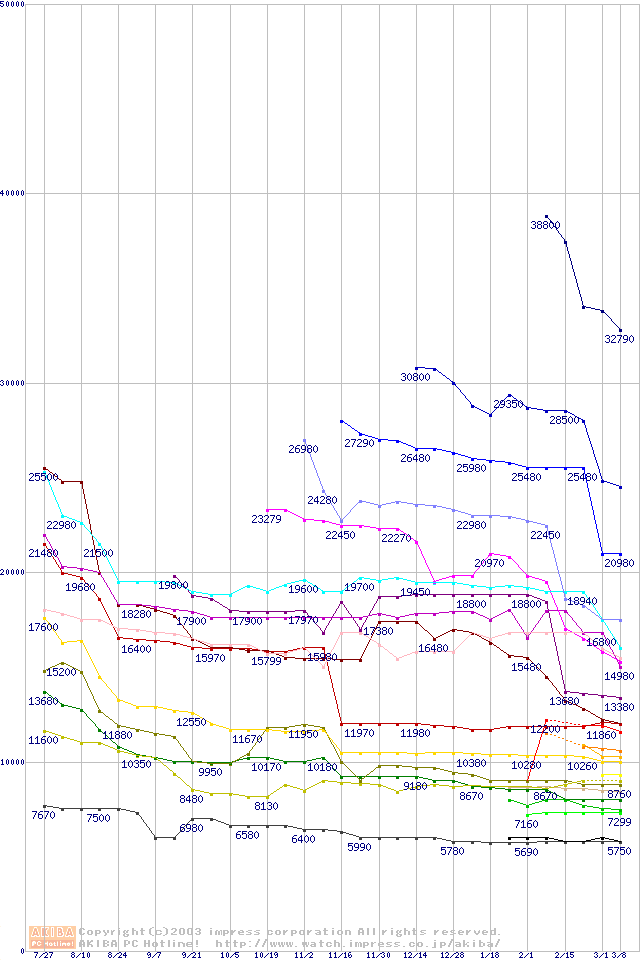 Socket A・FSB 200MHzの最安値推移