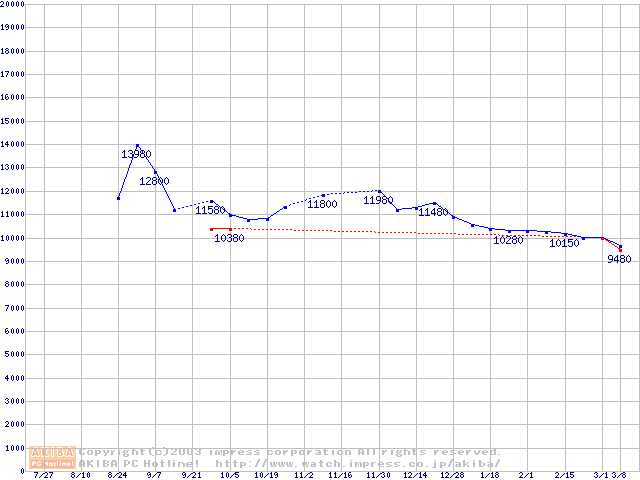 | [↓次グラフ]: | HDD 100GB以上(5400rpmクラス)の最安値推移 |