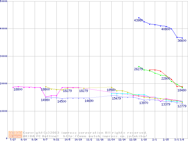 | [↓次グラフ]: | HDD 30GB~40GB未満(7200rpmクラス)の最安値推移 |