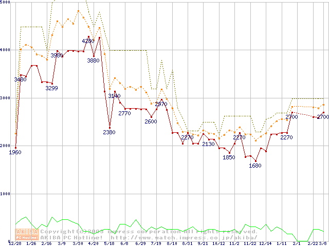 PC133 SDRAM DIMM CasLatency=2の最安値推移