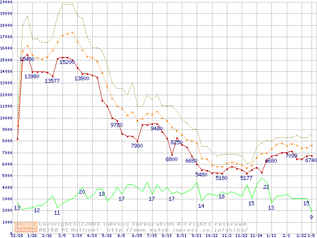 PC133 SDRAM DIMM CasLatency=2の最安値推移