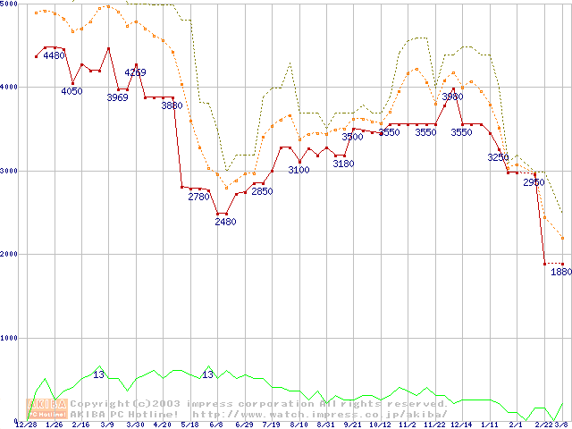 PC2100(DDR266) DDR SDRAM DIMM(CL 2.0)の最安値推移