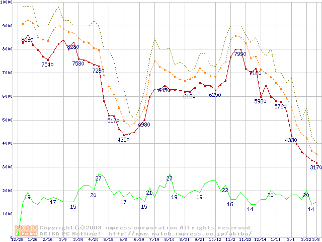 メモリ主要製品の最安値推移