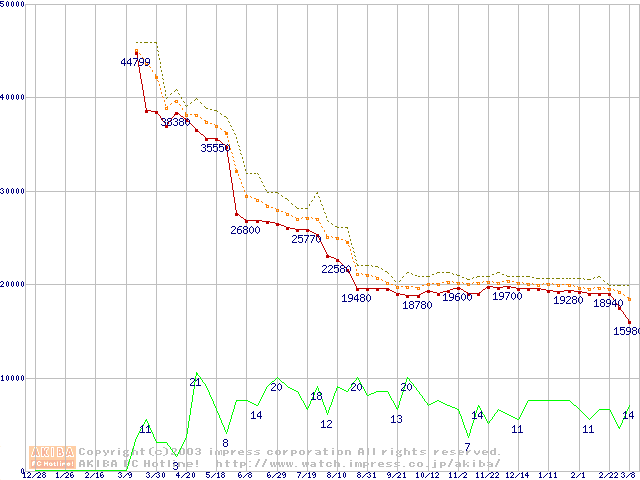 Athlon MP 2000+ (1.67GHz) リテールパッケージの価格推移
