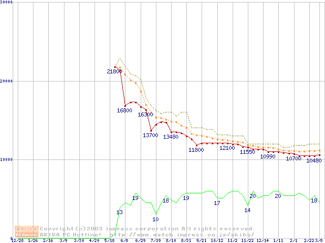 Travelstar 40GNX IC25N020ATCS05 20GBの価格推移
