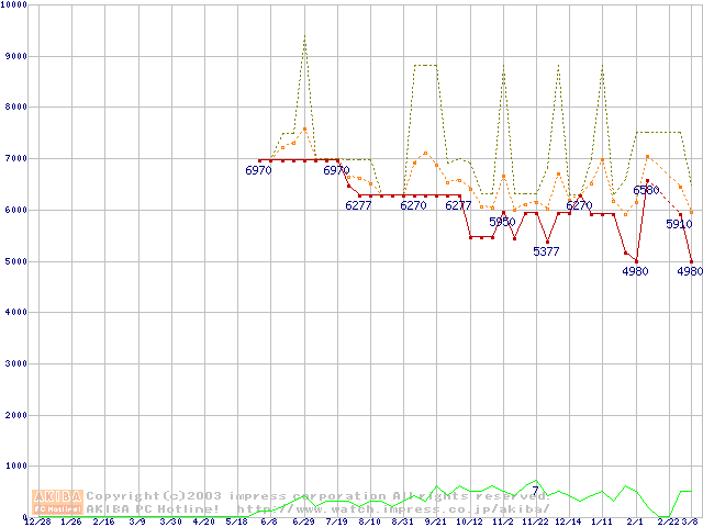 PC800-40 DRDRAM RIMM ECC対応の最安値推移
