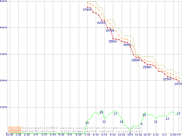 MKシリーズ (9.5mm,4200rpm,2MB,FDB,30GB/Platter)の最安値推移