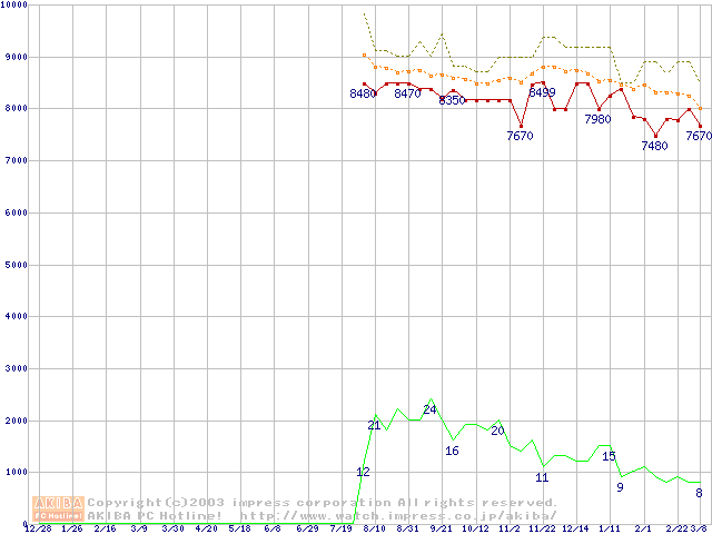 Fireball 3 (5400rpm,UltraATA/133,2MB,BB)の最安値推移