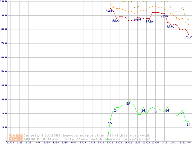 DiamondMax Plus 8 (7200rpm,2MB,UltraATA/133,FDB)の最安値推移