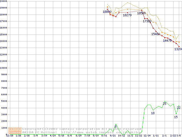 DiamondMax 16 (5400rpm,UltraATA/133,2MB,80GB/Platter,FDB)の最安値推移