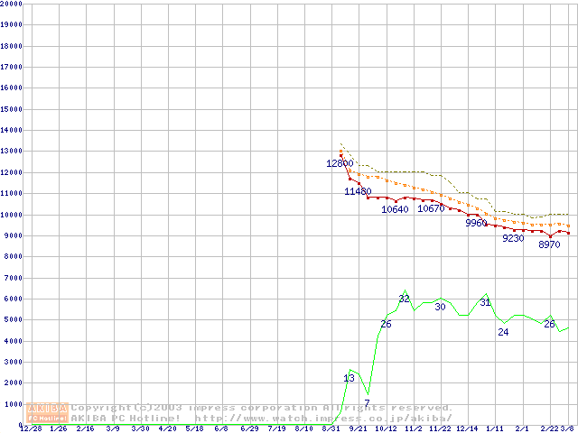 DiamondMax Plus 9 (7200rpm,2MB,UltraATA/133,FDB)の最安値推移