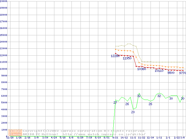 Socket 478 (micro-PGA,FSB 400MHz,L2 128KB,Northwood)の最安値推移