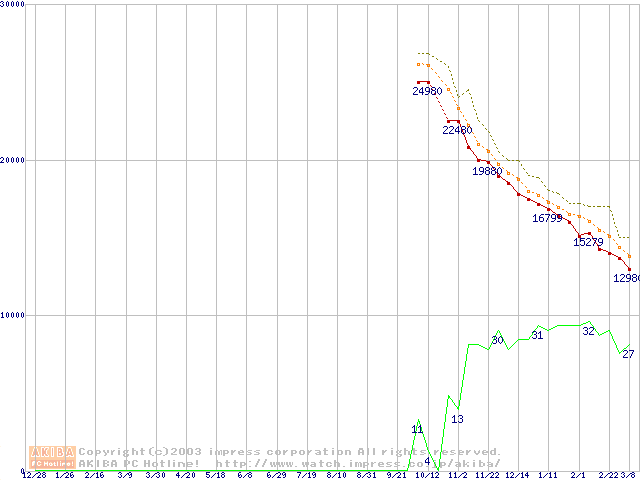 Deskstar 180GXP (7200rpm,2MB,UltraATA/100,FDB)の最安値推移