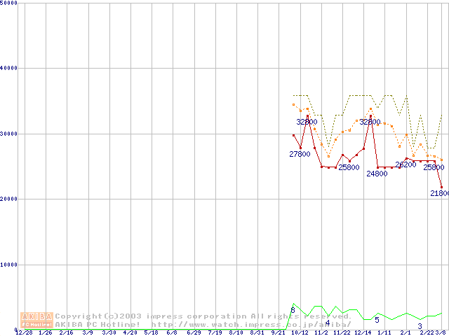 PC3500(DDR433) DDR SDRAM DIMMの最安値推移