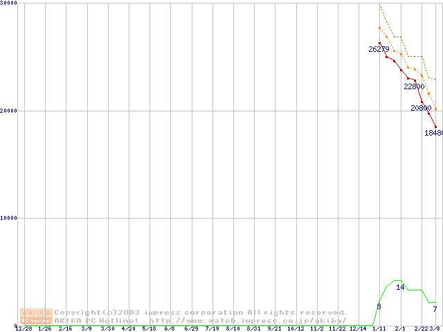DiamondMax 16 (5400rpm,UltraATA/133,2MB,80GB/Platter,BB)の最安値推移