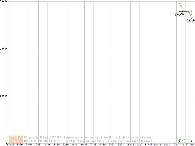 Socket 604 (micro-PGA,FSB 533MHz,L2 512KB,Prestonia)の最安値推移