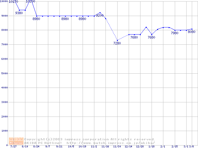 | [↓次グラフ]: | Socket A (PGA,FSB 266MHz,L2 256KB,Thunderbird)の最安値推移 |