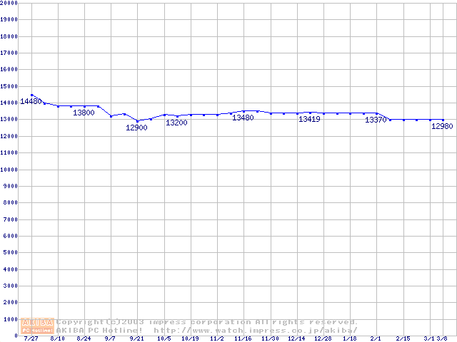 | [↓次グラフ]: | Socket 370 (FC-PGA,FSB 133MHz,L2 256KB,Coppermine)の最安値推移 |