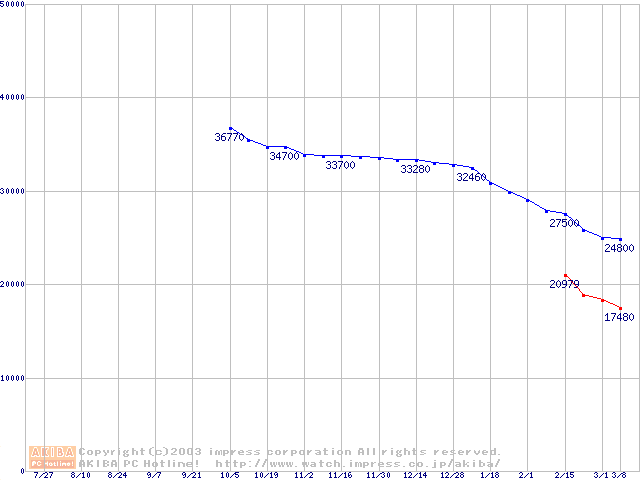 | Deskstar 180GXP (7200rpm,8MB,UltraATA/100,FDB)の最安値推移 |