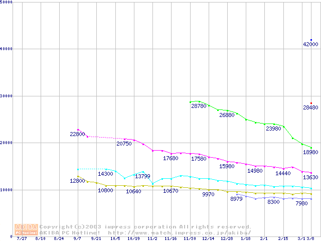 | [↑前グラフ]: | DiamondMax Plus 9 (7200rpm,8MB,UltraATA/133,FDB)の最安値推移 |