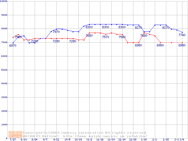 | [↑前グラフ]: | WD Caviar (5400rpm,UltraATA/100,2MB)の最安値推移 |