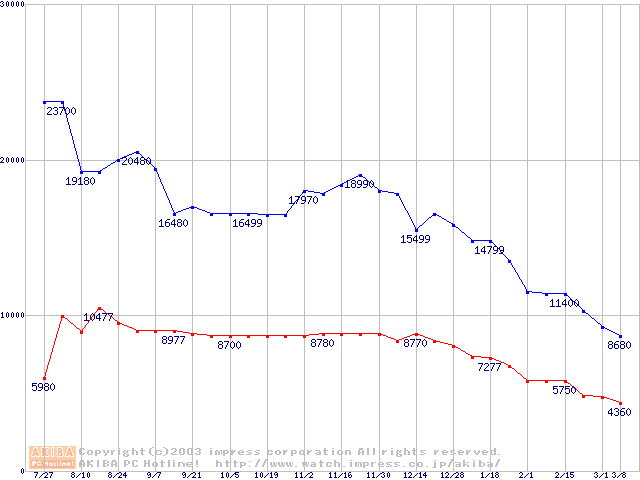 | [↓次グラフ]: | PC3500(DDR433) DDR SDRAM DIMMの最安値推移 |