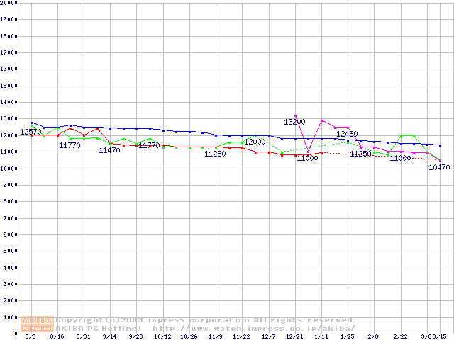 | [↑前グラフ]: | 2.5インチHDD 20GB~30GB未満(9.5mm厚)の最安値推移 |
