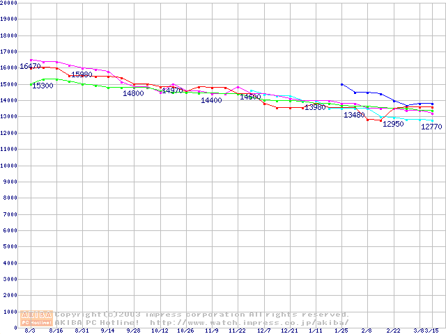 | [↑前グラフ]: | 2.5インチHDD 30GB~40GB未満(9.5mm厚)の最安値推移 |