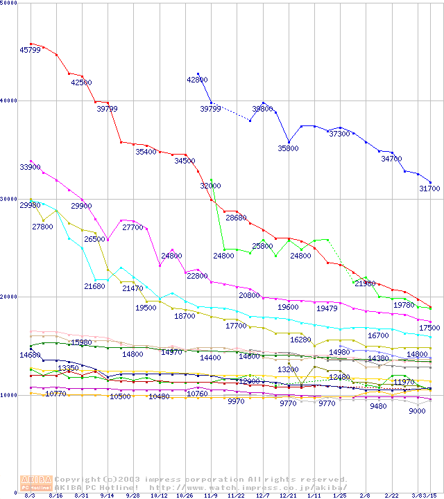 2.5インチHDD 60GB~80GB未満(9.5mm厚)の最安値推移