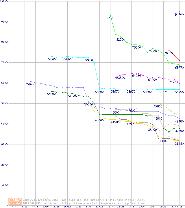 Socket A・FSB 266MHzの最安値推移